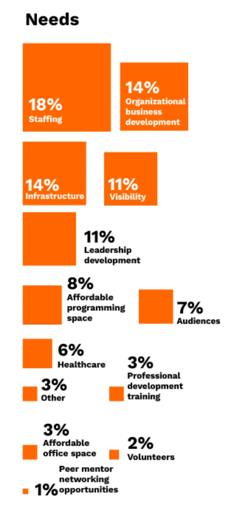 - Increased staff capacity and the ability to support artists are urgent and fundamental priorities for POC arts entities.